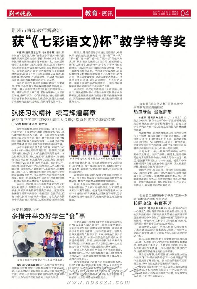 《荆州晚报》2024年11月22日报道我校举行建校83周年庆祝大会暨习坎系列奖学金颁奖仪式