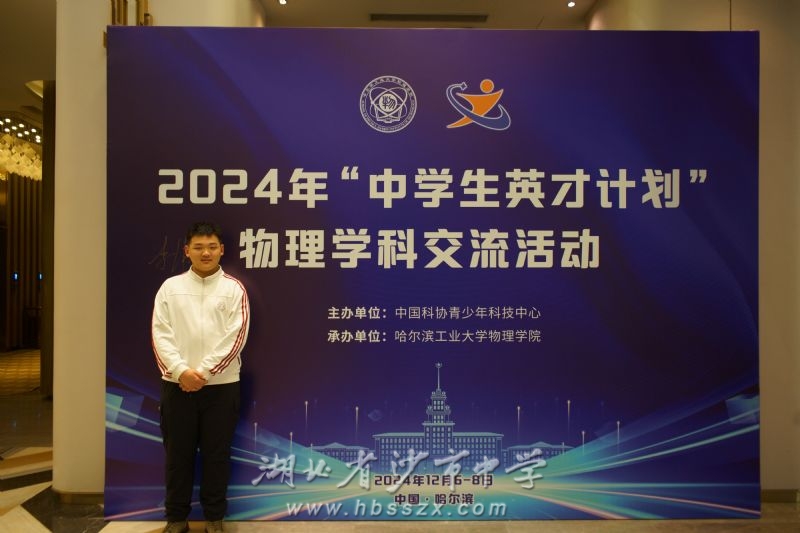 熊思铭同学在哈尔滨工业大学活动现场 其中,沙市中学2302班的熊思铭同学凭借其在“英才计划”活动中的优异表现,历经层层选拔,脱颖而出,成为湖北省武汉市外的唯一代表参与了此次活动。
