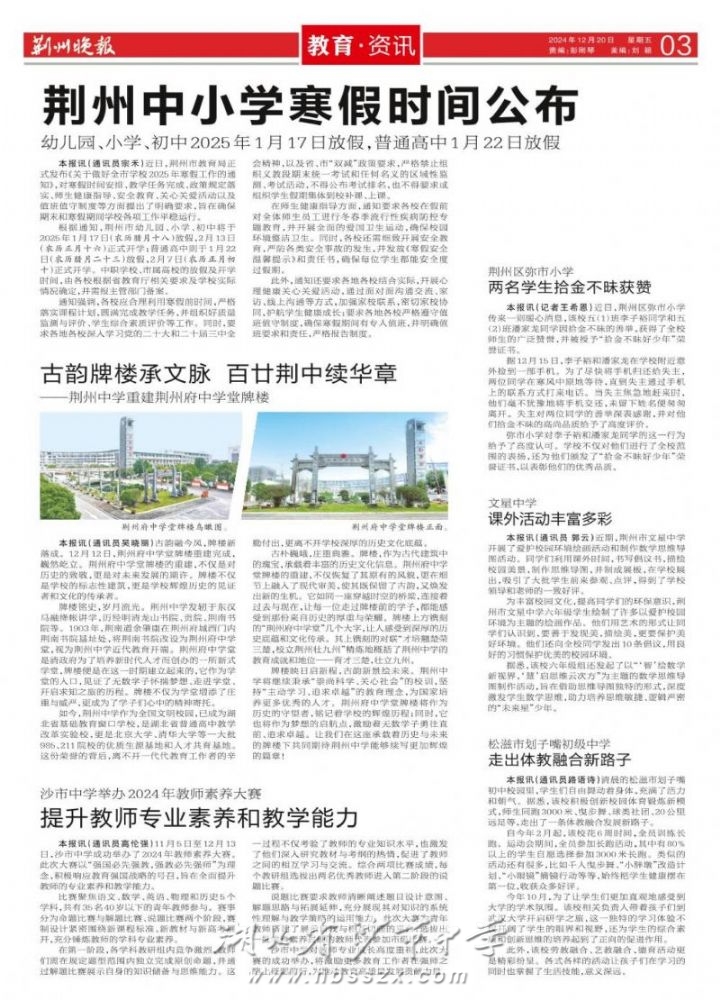 《荆州晚报》2024年12月20日报道我校举办2024年教师素养大赛