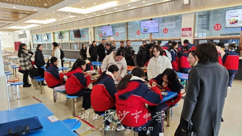 一系列充实且富有意义的活动结束后,已临近中午时分,同学们怀着好奇与期待的心情来到了学校的食堂,准备就餐。在这里,大家亲身体验了沙市中学颇具特色的食堂。