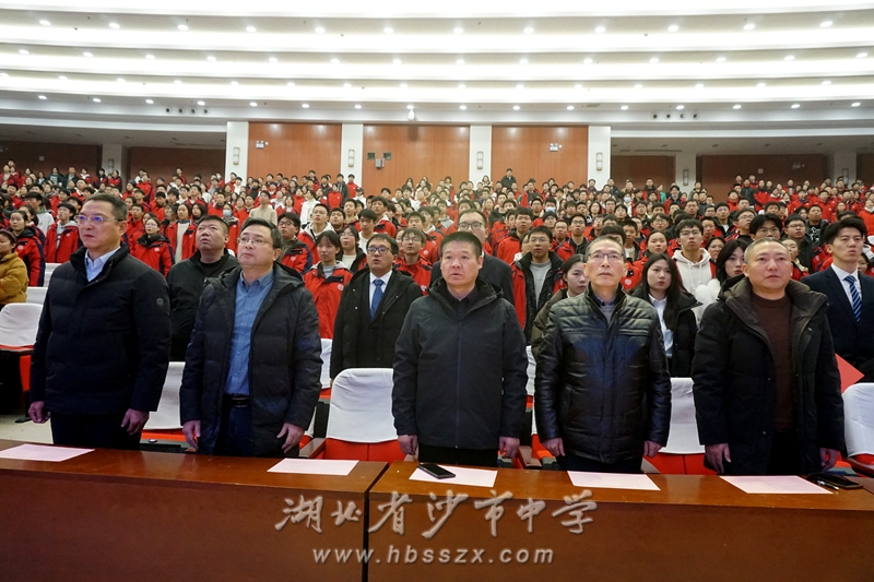 14:00,高一年级的800余名学子,身着火红的冬季校服,与校级领导、教师们欢聚一堂,现场氛围热烈而温馨。高二年级同学们,通过直播链接,在各自教室中共享着这份节日的欢乐与祝福,荆州电视台、荆州日报客户端以及沙市中学抖音号同步进行了网络直播,让这份喜悦跨越时空,传递给更多人。