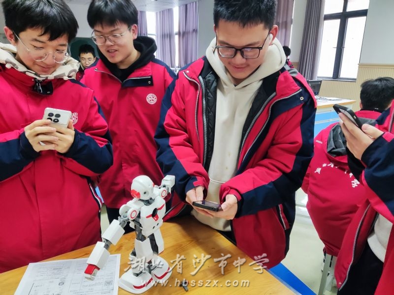 机器人比赛以“珠穆朗玛3号”人形机器人为目标,学生使用手机下载程序连接机器人,完成软件自带动作。在互动环节,学生按照比赛项目要求对机器人进行简单编程,让机器人做出单独抬左手、抬右手、前进、后退及其他复杂的自编动作。