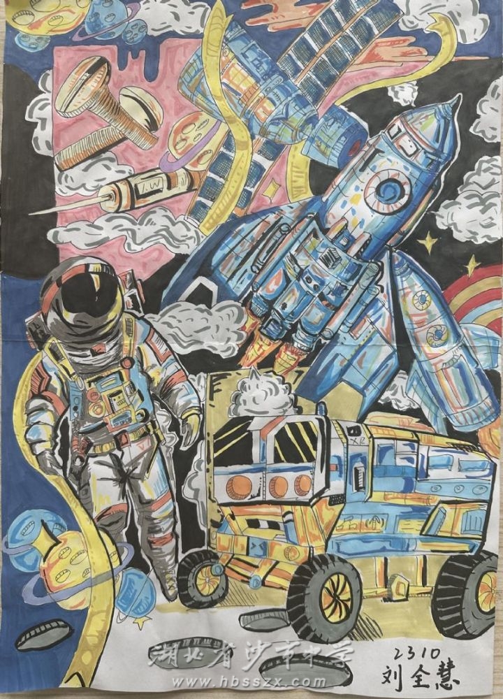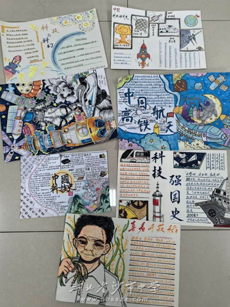 科普黑板报、科幻画、语文科技征文、英语书法、英语科技手抄报、中国科技史手抄报等作品,充分展现了学生的科技知识储备和人文素养水平。