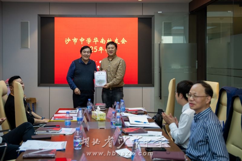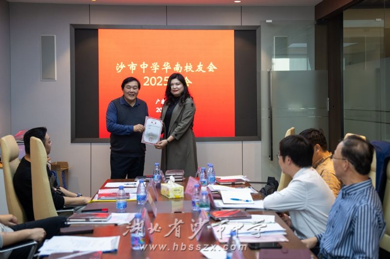 与会人员合影 会上,名誉会长刘创宣读了聘任校友会新增副会长、理事的通知,老校长邓继新为新任副会长和理事颁发了聘书。会长余胜作了华南校友会2024年度工作报告,回顾了过去一年校友会在服务校友、服务母校、促进合作、发展会员等方面取得的成绩,提出了校友会2025年工作思路和计划,并对《沙市中学华南校友会章程》(修订稿)进行了详细说明。理事周良成汇报了2024年度沙市中学华南校友会财务报告。理事会成员对工作报告、章程修订稿和财务报告进行了充分讨论并表决通过。