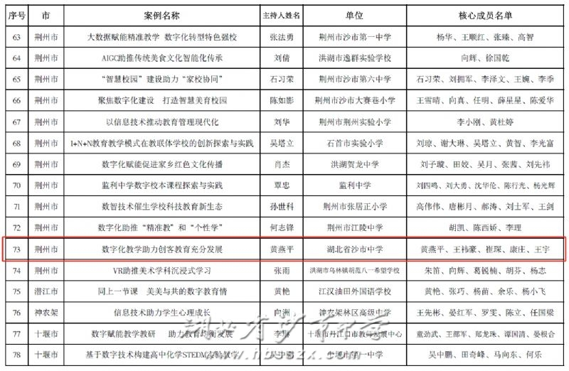 沙市中学案例成功入选湖北省基础教育数字化转型优秀案例