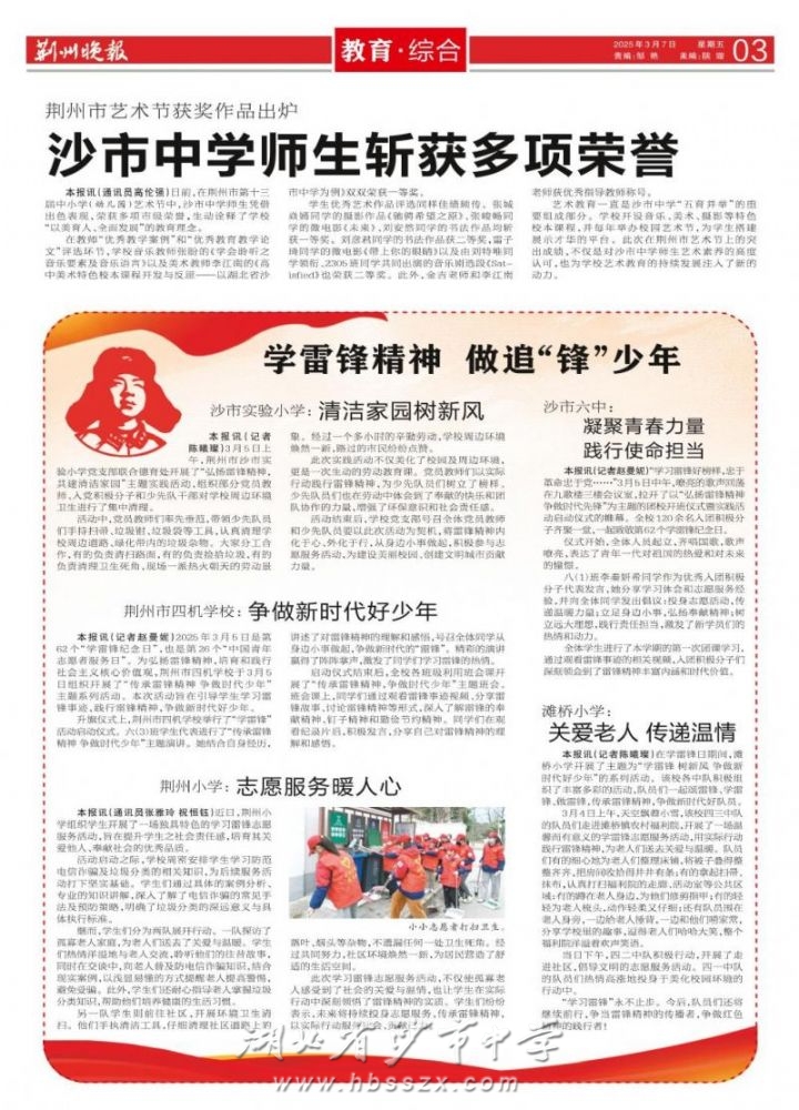 《荆州晚报》2025年3月7日报道我校师生在荆州艺术节上斩获多项荣誉
