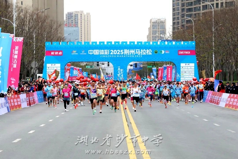 2025年3月30日清晨7:30,荆州文化体育中心被两万跑者的热情点燃。随着发令枪响,2025荆州马拉松赛正式拉开帷幕。这场融合了体育竞技与城市文化的盛会中,沙市中学师生与校友组成的“习坎方阵”成为赛道内外亮眼的风景。