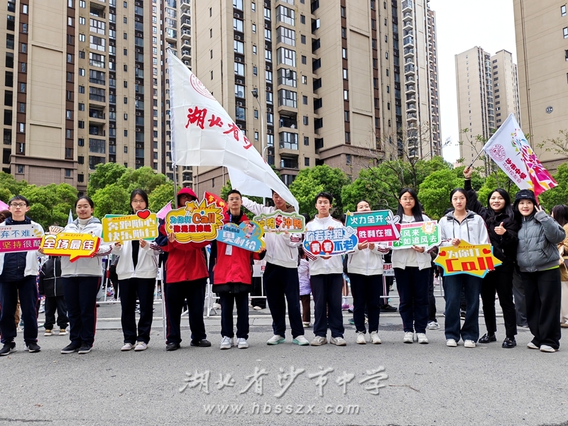 当跑者们在赛道上拼搏时,沙市中学学生组成的助威团在观礼区掀起阵阵热浪。同学们自制的加油手牌创意十足,“等风来,不如追风去”“奔跑随心,快乐随行”“放弃不难,但坚持很酷”等标语与挥舞的校旗交相辉映。高二(3)班李佳颖同学表示:“虽然不能亲自参赛,但我们要用呐喊为学长学姐和老师们注入能量,这也是另一种形式的奔跑”。