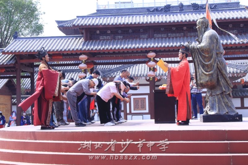 研学之旅的第一站,是“汉式感恩礼”。同学们身着汉服,在经典诵读中感悟老师教诲和家人关爱,在一拜之间表达自己的感恩之情。