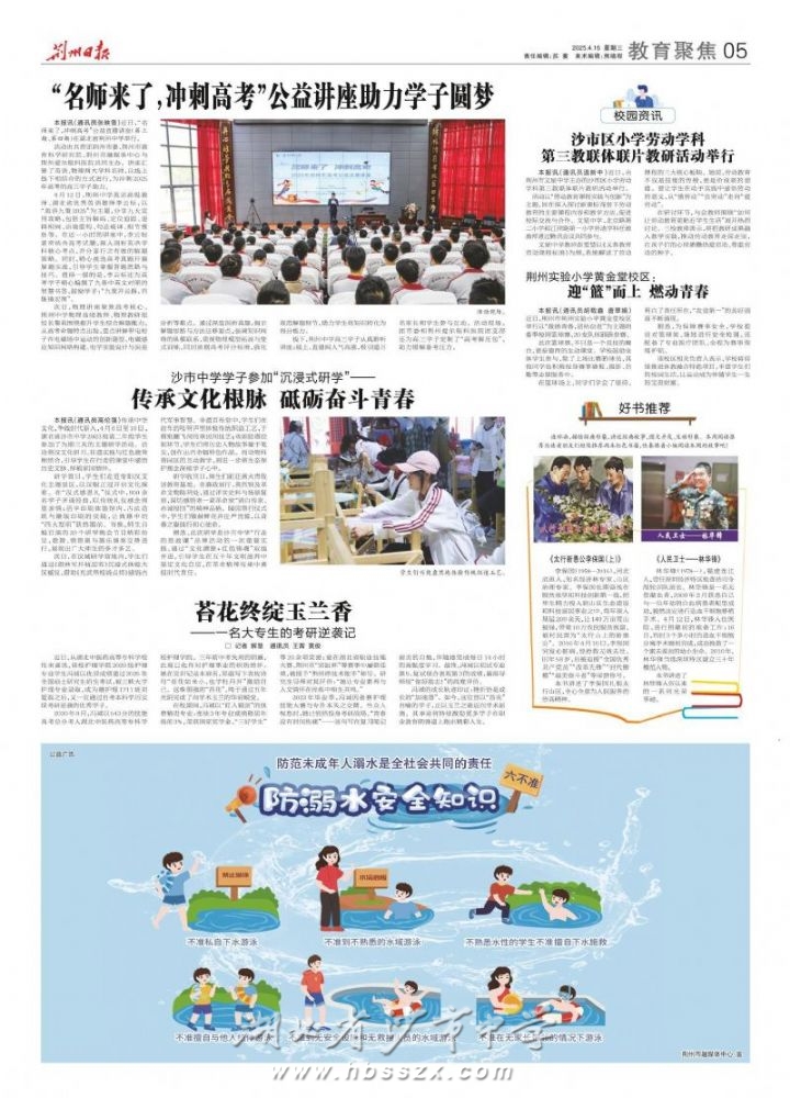 《荆州日报》2025年4月16日报道我校2023级学子举行传承中华文化研学活动
