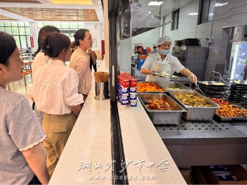党委副书记、校长徐善慧讲话 4月22日,为深化家校共治,提升校园食品安全透明度,学校利用“校长接待日”开展了食堂开放活动,邀请膳食监督家长委员会代表走进食堂,通过数字化技术监督链条,共同见证食材采购、加工到供餐的全流程管理。活动以“透明共治”为核心,推动校园食安从“单向管理”迈向“家校共护”新模式。沙市中学党委副书记、校长徐善慧,党委委员、副校长唐年新参加了此次活动。