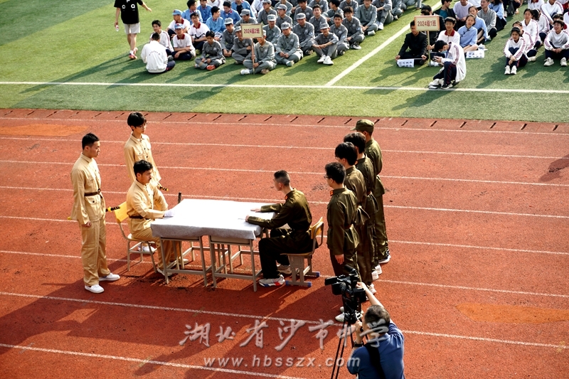 首先上演的是震撼人心的创意入场式。沙市中学高一和高二共32个班级围绕抗日战争期间的重大历史事件,如九一八事变、百团大战、平型关大捷等,每班一个主题,通过音乐、服饰、道具、器材,以歌舞、短剧表演等形式,将抗日战争的历史记忆进行具象化呈现。同学们用灵动的舞姿、激昂的歌声、响亮的口号、生动的表演,将一段段波澜壮阔的历史搬上舞台,立体刻画英雄人物,传承抗战精神。有的班级重现了战争时期的艰苦场景,有的班级演绎了英雄人物的英勇事迹,每一个节目都饱含着同学们对历史的铭记和对英雄的敬仰,展现出强烈的爱国情怀与青春活力。