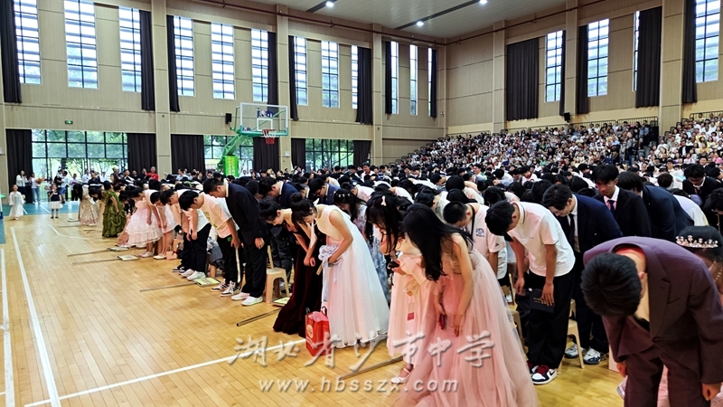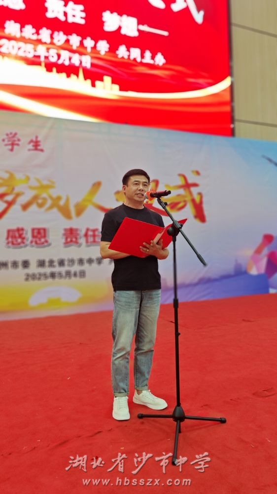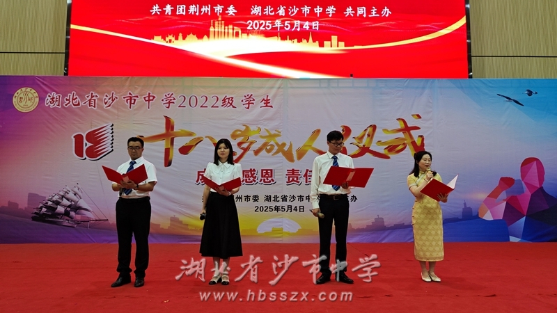 5月4日,立夏将至,万物葱茏。沙市中学体育馆内,2022级全体学生与家长携手步入会场,共同迎接这场以“成长、感恩、责任、梦想”为主题的成人仪式,在青春的节点上镌刻下庄严的成长印记。学校党委书记熊礼才,党委副书记、校长徐善慧等领导,全体高三班主任及教师共同见证了这一神圣时刻。