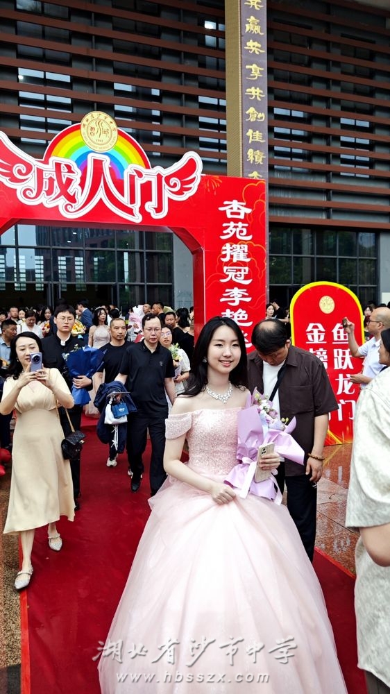 最后,在暖场音乐的陪伴下,家长与学生手牵手依次走过“成人门”。学校领导、班主任、科任老师分列两侧,微笑着为每一位走过的学生送上祝福:“加油!”“高考必胜!”穿过这道门,意味着正式告别少年时代,迈向责任与担当的新征程,这是属于他们的成人礼,更是高考冲刺的冲锋号。