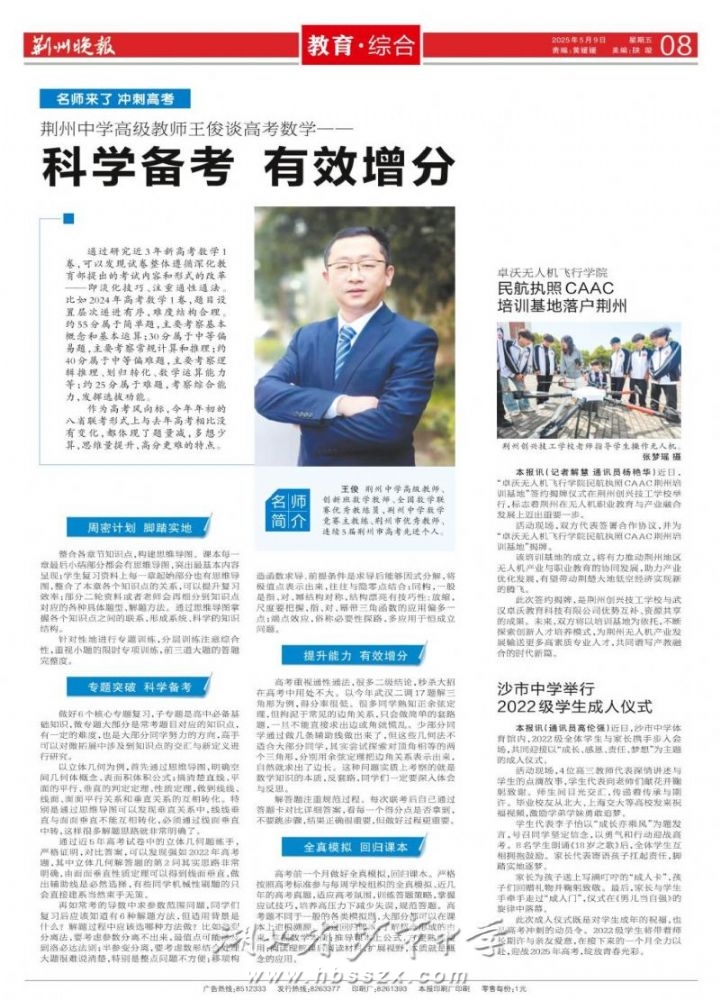 《荆州晚报》2025年5月9日报道我校举行2022级学生成人仪式