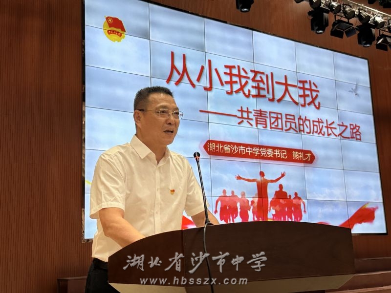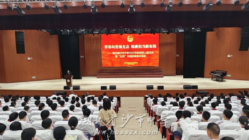 为深入学习贯彻习近平总书记关于青年工作的重要思想和习近平总书记考察湖北重要讲话精神,落实党、团一体化培养体系要求,筑牢党建带团建的坚实根基,激励广大青年学子继承和发扬五四精神,厚植爱党爱国的赤诚情怀,5月9日下午,沙市中学在艺术报告厅隆重举行2025年新团员入团仪式暨“五四”主题团课宣讲活动。活动由校团委副书记黄嘉懿主持,校党委书记熊礼才,党委副书记、校长徐善慧,党委委员、副校长胡直及党委委员、副校长唐年新出席仪式,高一高二年级党支部书记、青年教工团支部成员、新发展团员及高一年级全体学生齐聚一堂,共同见证这一庄严时刻。