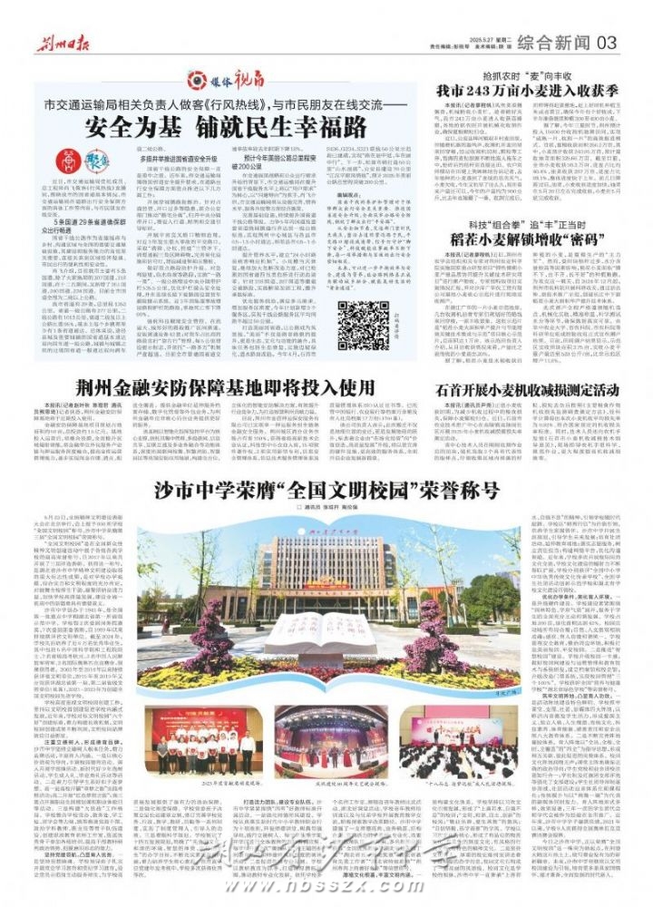 《荆州日报》2025年5月27日报道我校荣膺"全国文明校园"荣誉称号