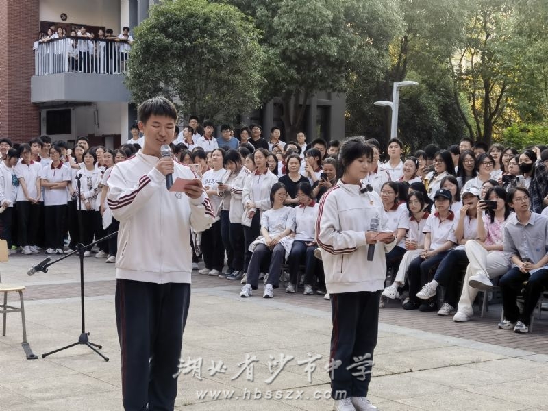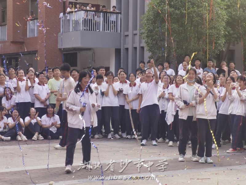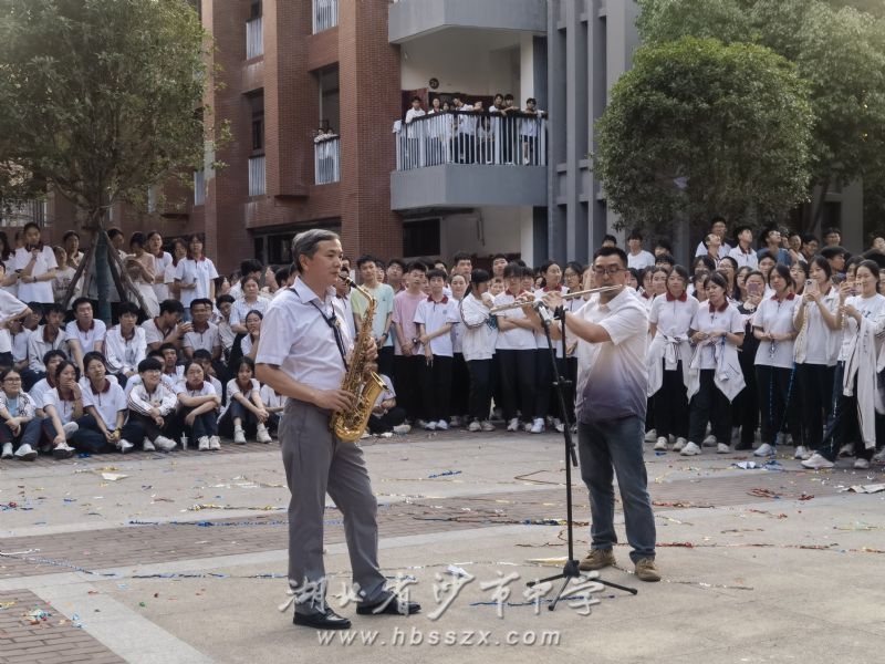 镇祥平老师和冀李老师带来的萨克斯与笛子间奏《我爱你中国》,更是将现场的氛围提升到了一个新的高度,优美的旋律中饱含着对祖国的热爱,也让高三学子们在备考的紧张时刻感受到了家国情怀的熏陶。冀李老师发表了热情洋溢的高考祝福,鼓励高三学子们要充满信心,勇敢面对高考,在最后的冲刺阶段全力以赴!随后,全体高三学子们齐声高喊:“荆州高考看沙中,站在沙中最高峰,我不成功谁成功!”这激昂的口号声响彻云霄,展现了高三学子们的豪迈斗志和必胜信念。