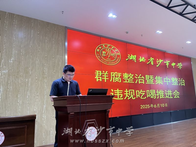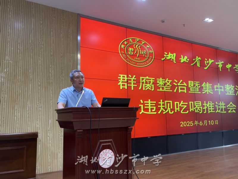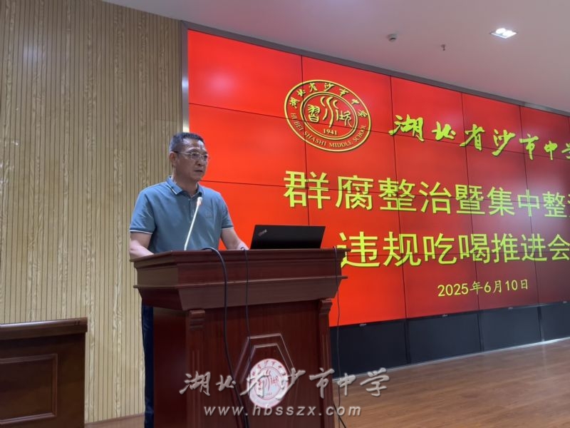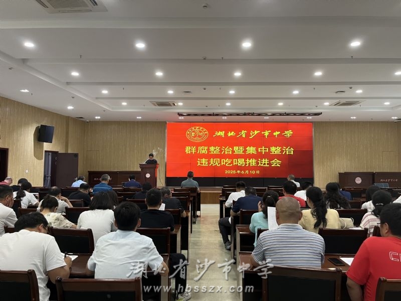 会议现场 为深入贯彻中央八项规定精神,纵深推进教育系统群众身边不正之风和腐败问题专项整治工作。6月10日,沙市中学召开群腐整治暨集中整治违规吃喝推进会。