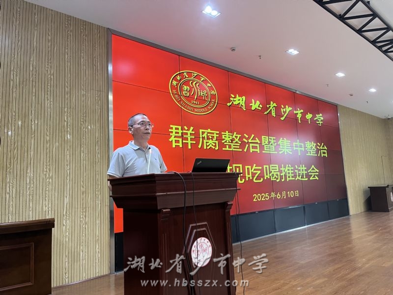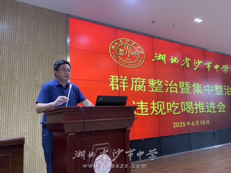 沙市中学党委书记熊礼才讲话 沙市中学党委书记熊礼才作总结讲话,他梳理了群腐整治的主要内容,结合身边人身边事,对照《违反政治纪律和政治规矩问题案例精读及取证指引(节选)》《党员干部违规吃喝行为定性处置及取证指引》《形式主义官僚主义问题定性处置及取证指引》,深入剖析相关典型案例,要求全体党员干部:一是深入学习中央八项规定精神,学查改一体推进,尤其对禁止违规吃喝问题进行重点强调;二是落实群腐整治相关要求,规范自身行为;三是不断加强作风建设和制度建设,建设风清气正的校园环境。