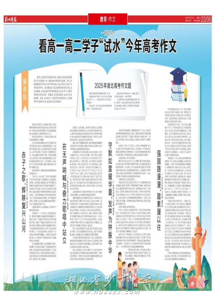 《荆州晚报》2025年6月13日刊登我校高一高二学子试水高考作文