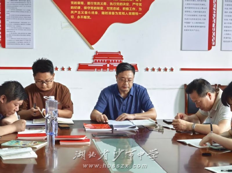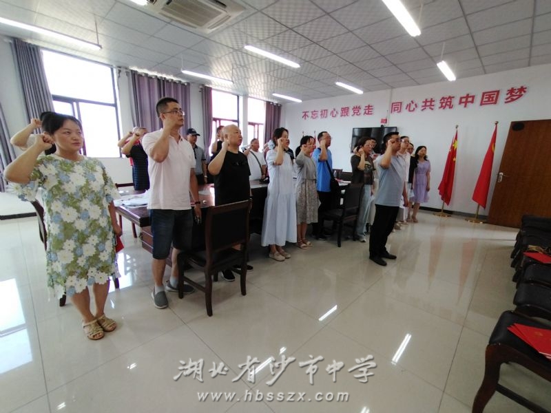 重温入党誓词环节 6月23日下午,根据上级工作要求,结合学校实际,在沙市中学党委的统一部署下,沙市中学各党支部开展了主题为“纵深推进深入贯彻中央八项规定精神学习教育”主题党日活动。