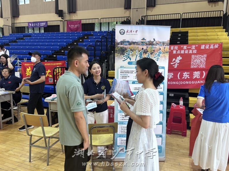 为精准服务高考志愿填报,畅通考生、家长与高校沟通渠道,6月25日上午,2025年高校招生现场咨询会在沙市中学体育馆举行。来自复旦大学、国防科技大学、华中科技大学、上海交通大学、武汉大学、浙江大学、中国科学技术大学、中国科学院大学、中国人民大学等全国部分知名高校的招生老师齐聚一堂,与考生、家长展开零距离、面对面的深度交流,帮助学生了解招生政策和做好理性规划。