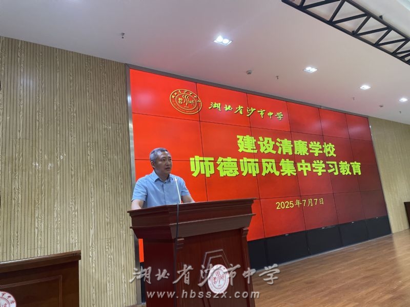 7月7日上午,沙市中学2025年春季学期末教职工大会在学校二楼会议室召开,党委委员、副校长唐年新主持会议。
