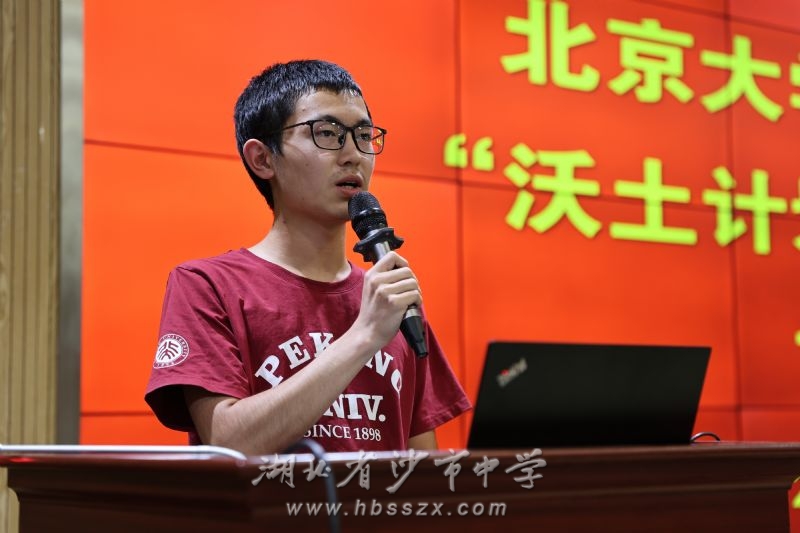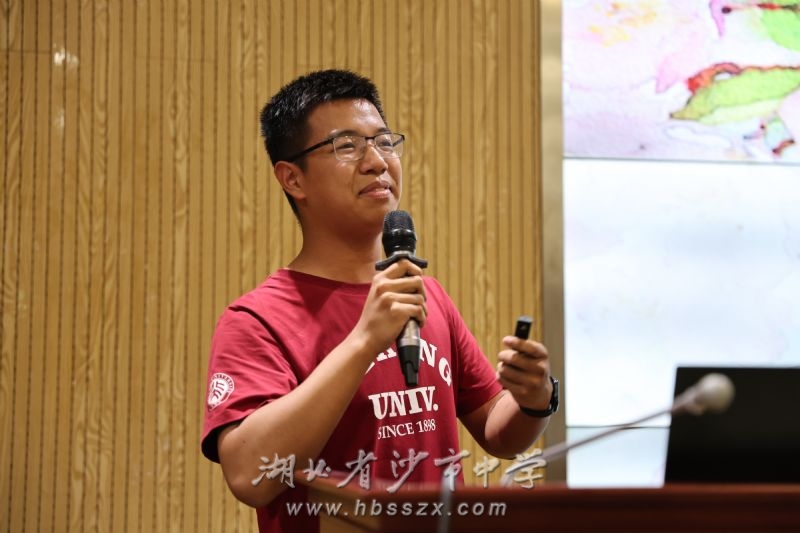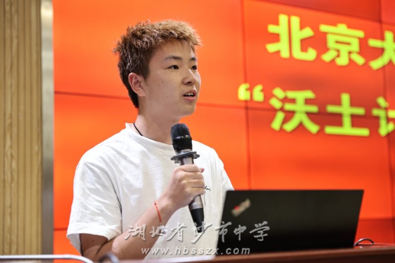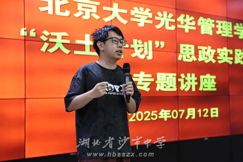 北京大学光华管理学院2024级本科生苏果向在场师生详细介绍了北京大学概况。他用生动的语言和鲜活的事例,将北大的魅力展现得淋漓尽致,让沙市中学的学子们对这所顶尖学府有了更直观、更深入的认识,激发了同学们对未来的向往。