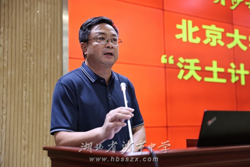 沙市中学党委委员、副校长唐年新担任主持并致欢迎辞。他代表沙市中学全体师生对北大光华管理学院“沃土计划”实践团的到来表示热烈欢迎,向长期以来关心支持沙市中学发展的荆州市委组织部、市教育局表示衷心感谢。他表示,此次北大师生的到访,为沙市中学的学子们搭建了一个宝贵的交流平台,希望同学们能珍惜机会,认真聆听,积极互动,从北大师生的分享中汲取成长的力量。