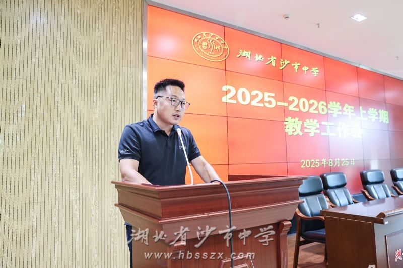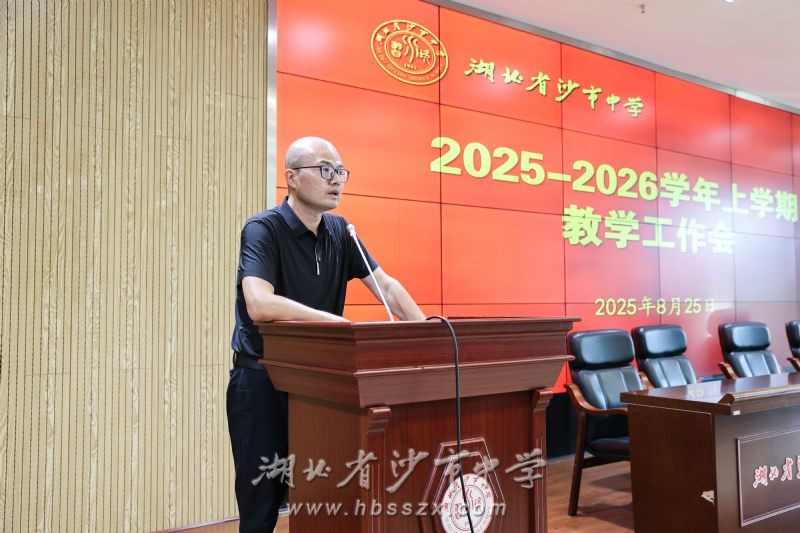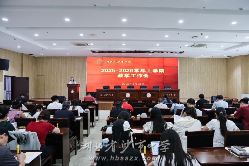 8月25日下午,沙市中学召开了2025-2026学年度上学期教学工作会。本次会议以“强化教学管理,提升教学实效”为主题,聚焦高质量教育体系建设,突出智能技术在教育实践中的深度融合,为新学期的教学工作明确了方向、凝聚了共识。