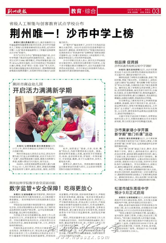 《荆州晚报》2025年2月21日报道我校上榜人工智能与创客教育试点学校