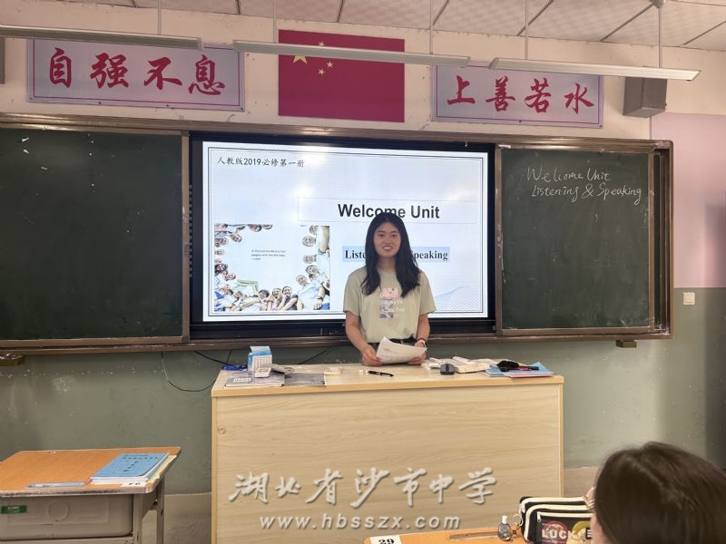 英语组李欣老师调研课 李欣老师讲授的课题是《Welcome Unit—Listening and Speaking》。课程回顾了正式与非正式自我介绍方式,并邀请一名学生进行现场展示——学生凭借表达流畅、内容完整的精彩表现,成为本节课的重要亮点。李欣老师基于学情对教材听力部分进行了创造性整合,既突出重点,又提升课堂效率,教学设计精巧。课堂上,李欣老师教态亲切自然,创新设计教学过程,鼓励学生大胆表达,引导学生在真实语境中完成自我介绍,并初步探讨英语学习策略。