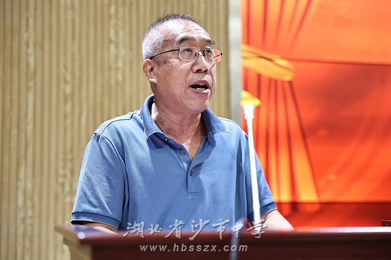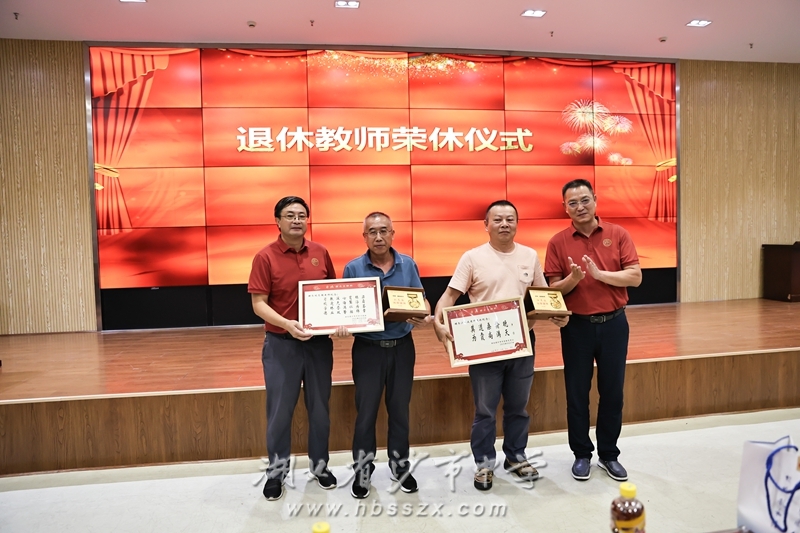 学校主要领导为退休教师颁发纪念品 大会为退休教师举行了温馨而隆重的荣休仪式。刘志国老师作为代表发言,他以“感慨、感谢、感恩”为主线,回顾了自己38年的教育人生。从桂子山求学,到沙市七中、三中任教,最终扎根沙市中学,他亲历并推动了学校的跨越发展。他深情回忆教育路上的温暖瞬间,感恩同事的帮助、学生的真情,并借诗句“桃花潭水深千尺,不及师生同仁情”表达不舍与祝福。党委书记熊礼才和校长徐善慧为退休教师颁发纪念品,现场掌声不息,敬意流淌。