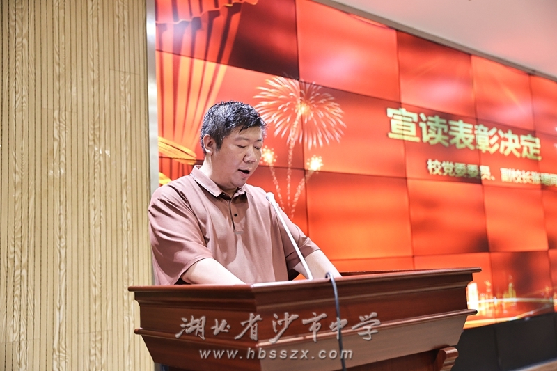 党委委员、副校长张珺宣读沙市中学年度表彰文件。本次表彰共设立“管理育人奖”“服务育人奖”“教书育人奖”“优秀党务工作者和优秀党员”“市级以上荣誉”“年度贡献奖”等多个奖项,表彰在学校各项工作中表现突出的集体与个人。