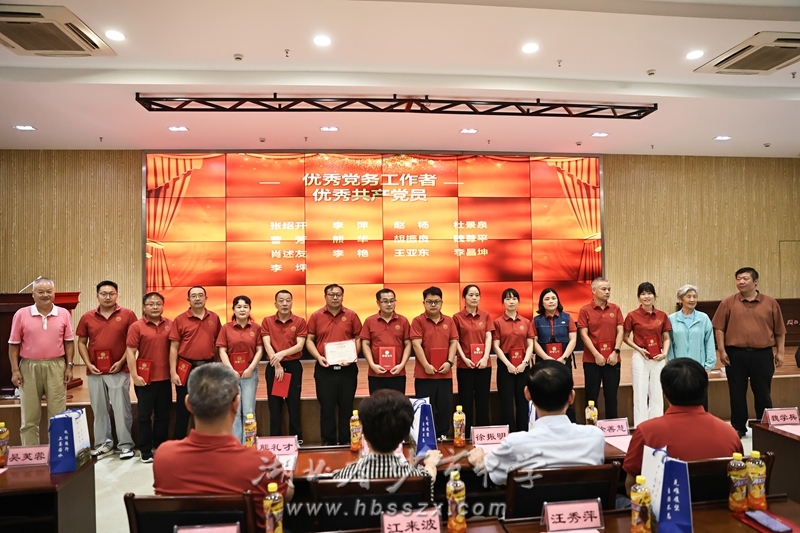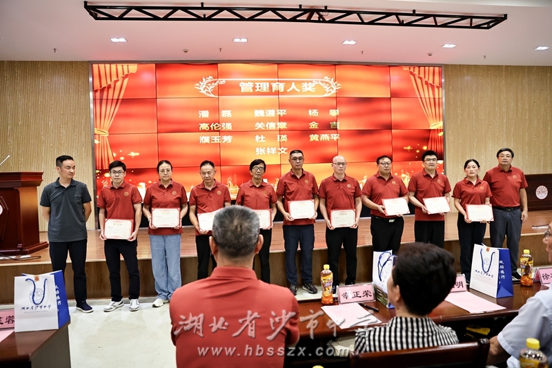 为获得“年度贡献奖”的黄燕平、潘磊老师颁奖 大会最后一个颁奖环节,表彰氛围再度升温。张绍开、李萍等13位教师获评“优秀党务工作者和优秀党员”,他们以党建引领教学,发挥先锋模范作用;张绍开老师凭借突出贡献,荣获荆州市2025年“五一劳动奖章”,成为全校教师学习的榜样;黄燕平、潘磊带领的竞赛团队因成绩优异,获评“年度贡献奖”。颁奖嘉宾沙市中学教育发展基金会理事长曹光炎,退休教师代表汪秀萍,湖北达雅生物科技股份有限公司董事长徐振明,荆州市延安精神研究会会长、原荆州市人大常委会副主任、沙市中学荆沙校友会第一届会长、沙市中学71届校友幸正荣分别与张珺、徐善慧、熊礼才为获奖者颁奖,荣誉的光环照亮了每一位奋斗者的脸庞。