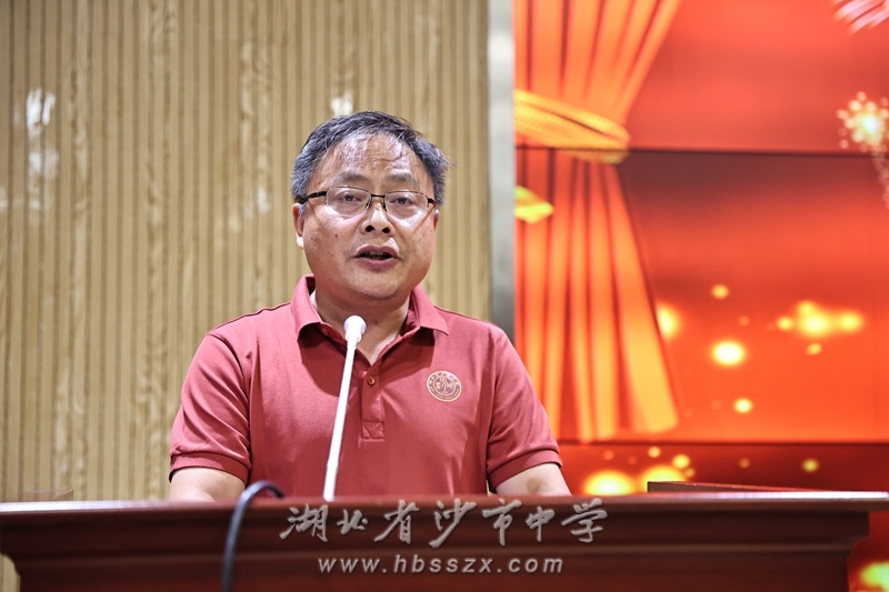 “教育强国之路,始于我们脚下;民族复兴之梦,系于我们手中。我们每天的付出,都在为这项伟大事业贡献力量。教育是静待花开的坚守,更是温暖生命的远征。”党委副书记、校长徐善慧发表热情洋溢的致辞。他代表学校向全体教职员工致以节日的问候和崇高的敬意,随后全面回顾了过去一年学校在高考、科技、体育等领域取得的亮眼成绩——高考成绩再创新高,学科竞赛捷报频传,体育赛事屡获殊荣。徐校长强调,这些成绩的背后,是全体教师用智慧浇灌、用汗水滋养的结果。他深入阐释“教育家精神”的丰富内涵,号召全体教师以“大先生”为追求,深耕教学课堂,潜心育人事业,当好学生成长道路上的“引路人”,以仁爱之心呵护学生成长,以实干精神推动学校教育高质量发展,为谱写教育强国建设的壮丽华章贡献沙市中学力量。