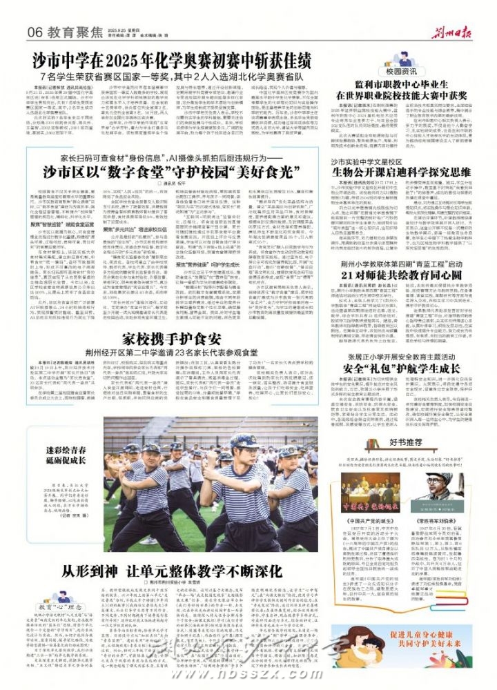 《荆州日报》2025年9月25日报道我校学生在2025年全国中学生化学奥赛初赛中斩获佳绩