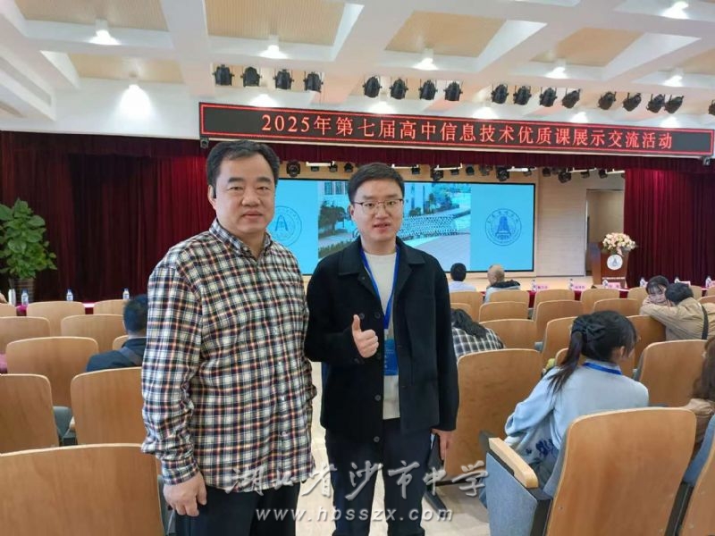 王祎豪老师与省教研员王志兵老师 近年来,沙市中学高度重视教师专业成长与学科建设,积极鼓励教师参加各类教学竞赛与展示活动,不断提升教育教学质量。王祎豪老师此次获奖,再次展现了沙市中学教师在专业能力与教学创新方面的实力。