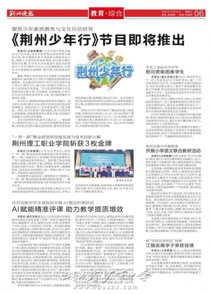 《荆州晚报》2025年10月24日报道市关工委慰问资助我校困难学生