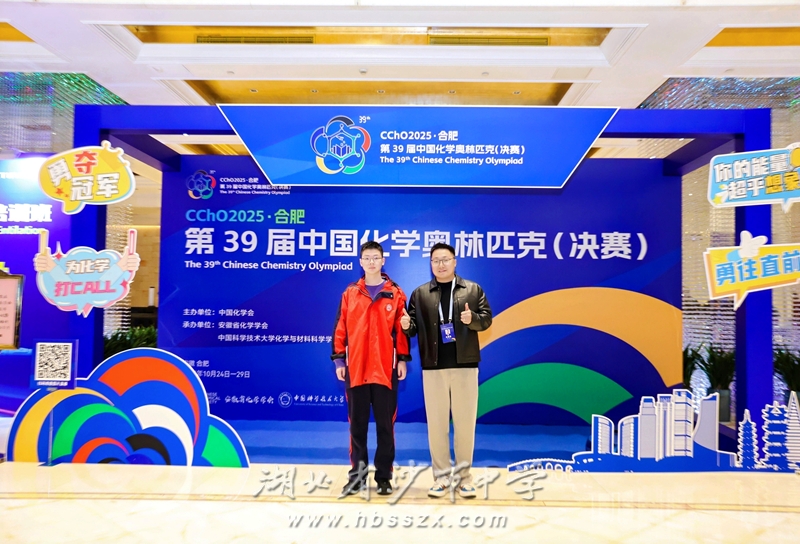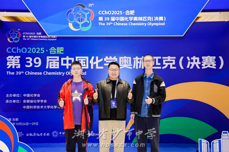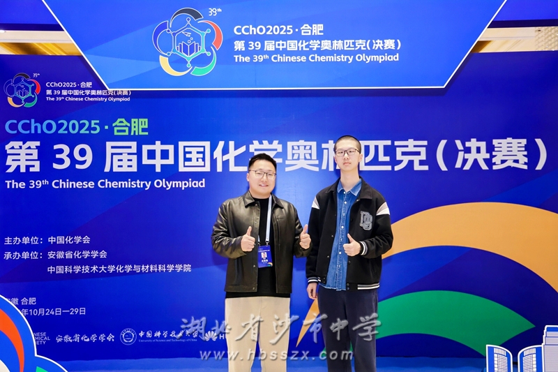 杜景泉老师与徐炎哲、蒋天元同学合影 10月29日,备受瞩目的第39届中国化学奥林匹克(决赛)在中国科学技术大学高新园区体育馆圆满落幕。沙市中学2301班徐炎哲、蒋天元两位同学凭借扎实的化学功底、卓越的实验技能和稳定的心理素质,在强手如林的激烈竞争中脱颖而出,双双斩获全国决赛金牌,为学校和湖北省赢得了荣誉。