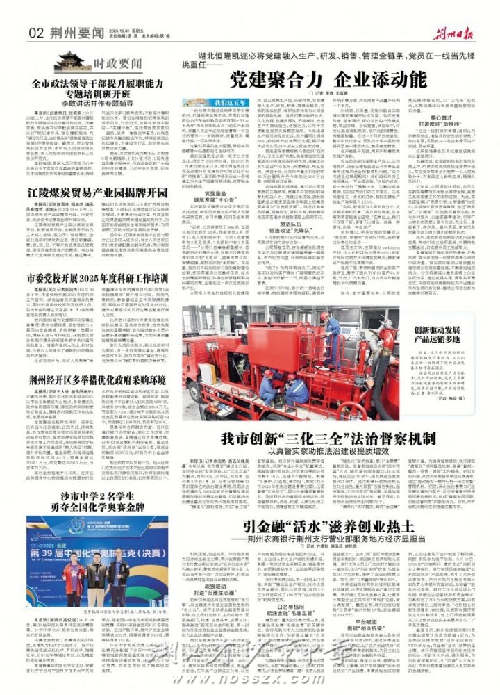 《荆州日报》2025年10月31日报道我校两学子斩获全国化学奥赛决赛金牌