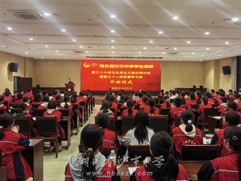 为进一步坚守为党育人的教育阵地,加强青年学生思想政治引领,筑牢信仰之基,培育时代新人,沙市中学学生党校于10月31日晚上6点举行了第三十六期马克思主义理论培训班暨第三十一期党章学习班开班仪式。仪式由校团委副书记黄嘉懿主持,校党委书记熊礼才,党委副书记、校长徐善慧,党委委员、副校长胡直,党办主任、2024级党支部书记李昌坤,学工处主任王亚东出席。