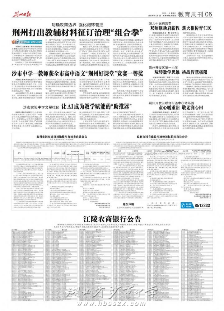 《荆州日报》2025年11月5日报道我校秦宏枭老师获得高中语文"荆州好课堂"竞赛一等奖