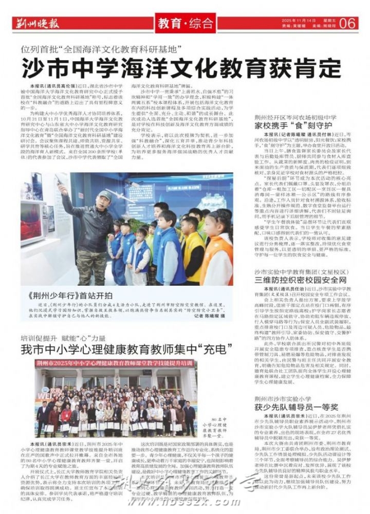 《荆州晚报》2025年11月14日报道我校被授予全国首批"海洋文化教育科研基地"称号
