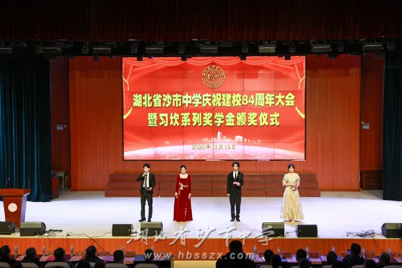 11月19日下午四时,沙市中学学术报告厅内座无虚席,庆祝建校84周年大会暨2024-2025学年度习坎系列奖学金颁奖仪式在此隆重举行。社会各界代表、全体校领导与高一师生现场参会,高二、高三学生在教室收看直播,荆州电视台江汉风客户端,沙市中学抖音号、视频号等多个平台同步线上直播。