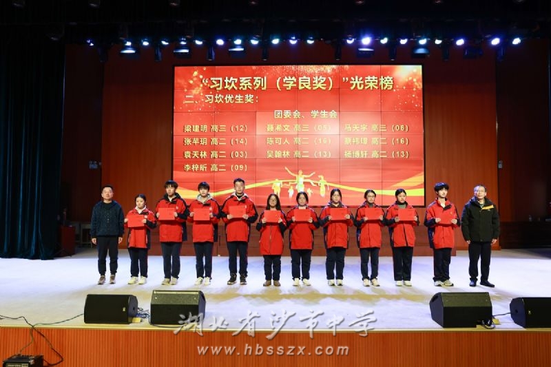 颁奖过程分15批次进行,沙市中学98届校友、荆州市自然资源和城乡建设局局长马林武,02届校友、博西家用电器(中国)有限公司华中大区销售总经理庞路路,92届校友、美国雅富顿石油公司研发工程师、92年沙市中学习坎之星黄粤,03届校友、湖北小胡鸭食品有限责任公司董事长王松,96届校友、荆州玺瑞自动化分拣设备有限公司总经理刘鹏,02届校友、新加坡南洋理工大学博士、高级研究员张霖,以及唐其明、熊业勤、常丽、杨光岚等退休教师代表作为颁奖嘉宾,与校领导一起为获奖学生颁发荣誉证书。这些奖项多数由沙市中学杰出校友捐资设立,体现了校友对母校的深情回馈与精神传承。