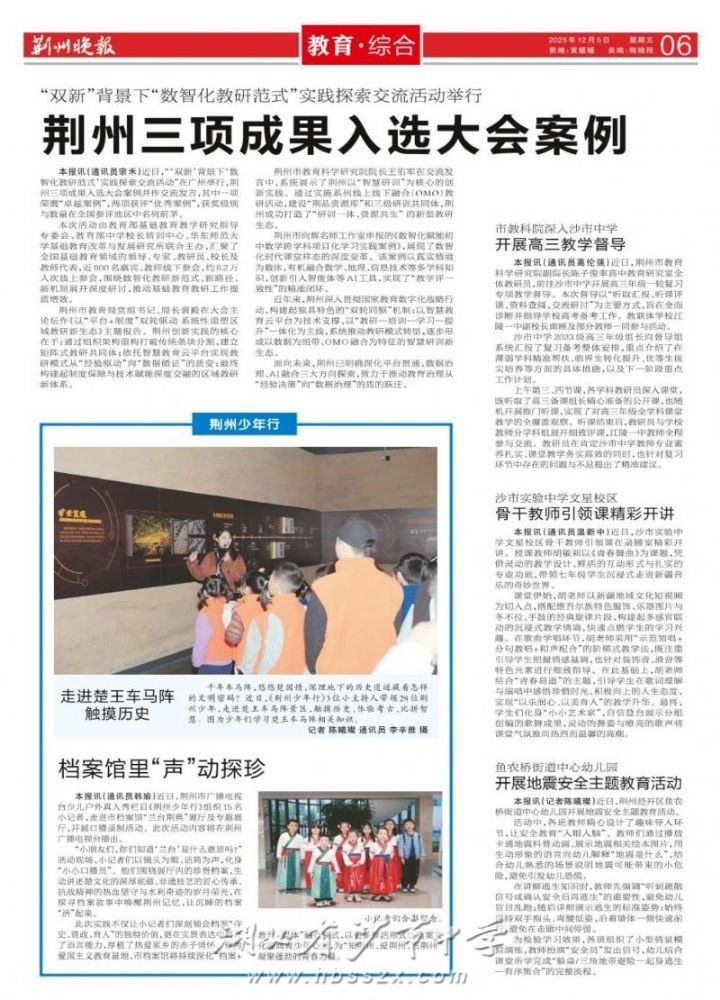 《荆州晚报》2025年12月5日报道市教科院视导我校高三教学