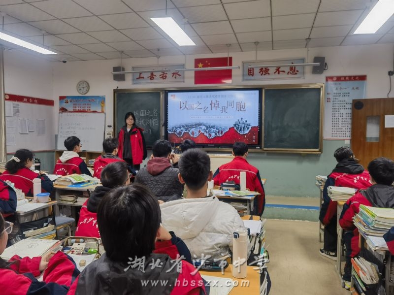 12月13日是南京大屠杀死难者国家公祭日。为缅怀遇难同胞,深化爱国主义教育,湖北省沙市中学组织开展了一系列纪念活动,引导广大师生铭记历史、珍视和平、凝聚爱国情怀、砥砺奋进力量。