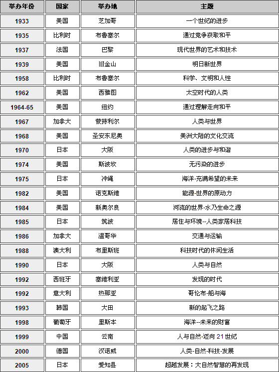 世界博览会是一个富有特色的讲坛,它鼓励人类发挥创造性和主动参与性,它更鼓励人类把科学性和情感结合起来,将有助于人类发展的新概念、新观点、新技术奉献在世人面前。